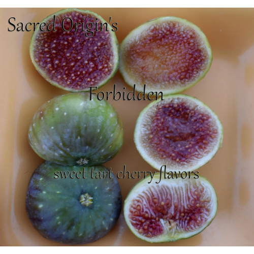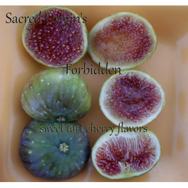 Mysterious, alluring, and unforgettable—Sacred Origin’s Forbidden is a fig that lives up to its name. This striking variety bears large, green-skinned fruit that glows with an inner core of sweet cherry-berry flesh, rich in color and complexity. The flavor is decadent and layered, offering a deep berry sweetness with a luxurious, almost dessert-like finish.