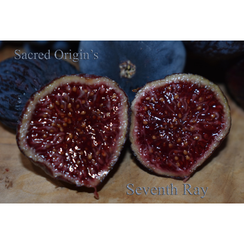 A rare and desirable cultivar, the Seventh Ray fig is as much a feast for the eyes as it is for the senses—one of those rare fruits that feels like it carries something ancient, sacred, and sublime.